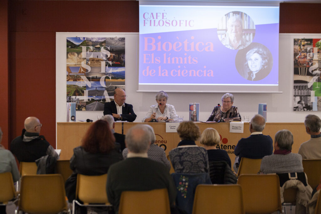 Carme Porta planteja si la Bioètica ha d’exercir una vigilancia sobre els avenços més polèmics de la ciencia. A partir d’aquí, i tot constatant una preocupant desafecció per la ciència en els últims temps, s’ha obert un intens debat, amb la participació del públic, sobre la conveniencia o no de posar límits a la ciència, és a dir, al treball dels científics. Boladeras diu que sí, però sempre respectant la llibertat dels científics: la Bioètica ha de ser cooperadora de la ciència, sempre respectant les conclusions de l’informe Belmont: principi d’autonomia, principi de beneficència i principi de justícia. En resum, tenint en compte ineludiblement els drets humans.