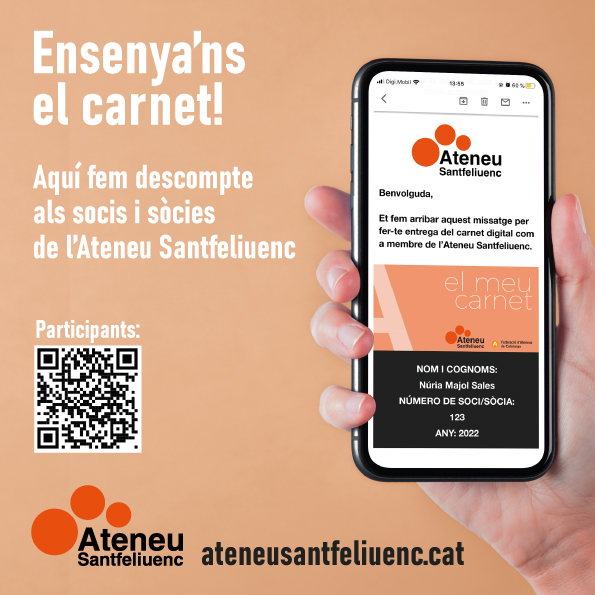 L’Ateneu ha iniciat una sèrie d’acords amb comerços i entitats de Sant Feliu de Llobregat de manera que els socis i sòcies de l’entitat podeu gaudir de descomptes i avantatges només mostrant el vostre carnet: