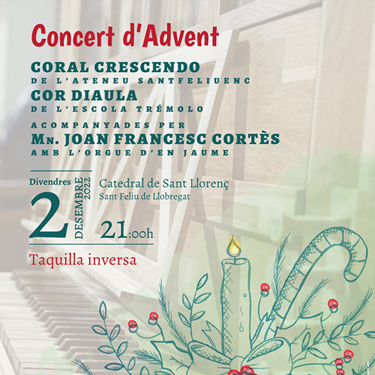 Concert de Coral Crescendo de l’Ateneu Santfeliuenc amb Quòdlibet Grup Coral de Molins de Rei i Joan F. Cortès i Ribot, organista.