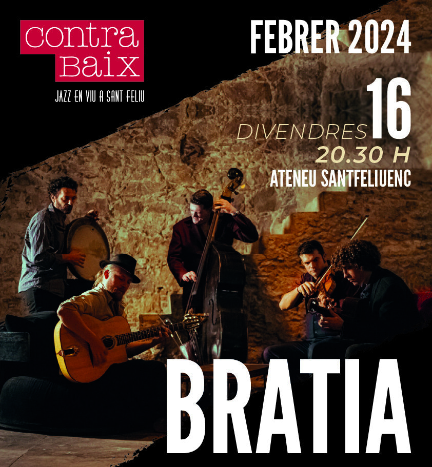 Sala d'Actes de l'Ateneu Carrer de l'Ateneu, 25, 1r, Sant Feliu de Llobregat, Barcelona, SpainBratia és una banda Barcelonina que neix de la necessitat del contrabaixista serbi establert a Barcelona, Ivan Kovačević, d’unir dos mons musicals en una trepidant proposta. L’infinit món sonor dels països balcànics i l’energia, sobrietat i precisió del jazz manouche unificats pel nomadisme de la música gitana crea un còctel explosiu que no deixa a...